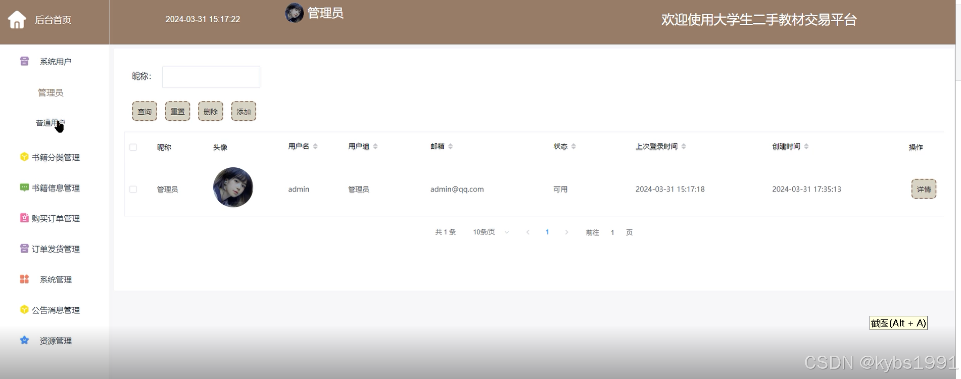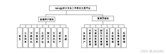 大学生二手教材交易平台可以划分为普通用户模块和管理员模块两大部分。