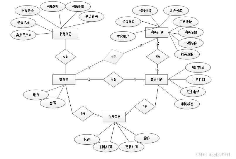 数据库概念结构设计主要涉及数据库的实体和实体之间的关系。通过实体-关系模型或者其他适当的模型,我们将定义系统中涉及的各个实体以及它们之间的联系。下面是整个大学生二手教材交易平台中主要的数据库表总E-R实体关系图。