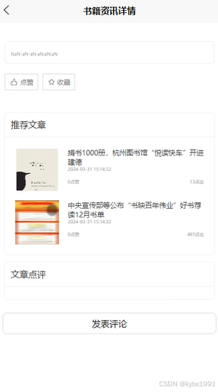 点击进入到详细界面,在详细界面可以收藏+赞+评论等操作。书籍资讯界面如下图4-5所示。