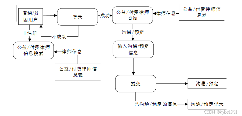 分析完法律公益服务系统的数据流,那么接下来我们来看系统的业务流程,图2-6就是业务流程图: