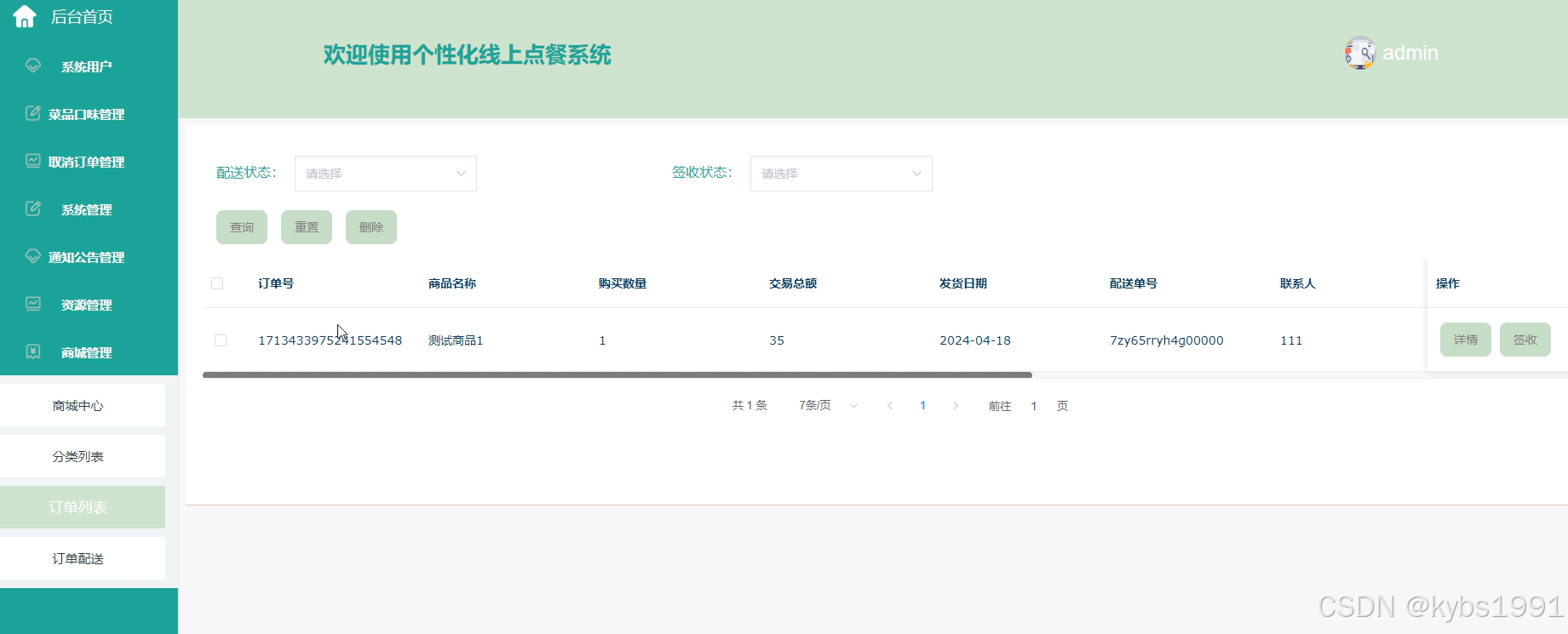 商城管理,个性化线上点餐系统中的管理人员在商城管理页面可以查看商城中心、分类列表、订单列表、订单配送等内容,并根据需求进行查询、删除、添加等操作。商城中心界面如下图所示。