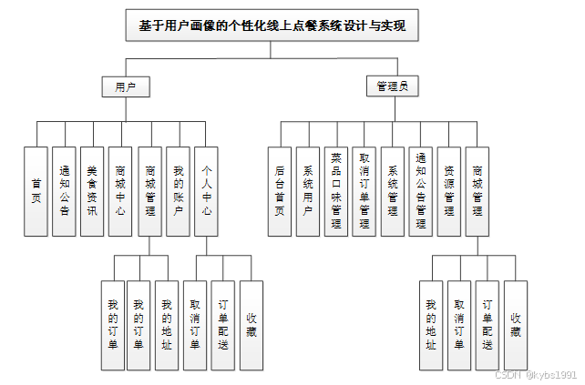 系统架构图属于系统设计阶段,系统架构图只是这个阶段一个产物,系统的总体架构决定了整个系统的模式,是系统的基础。个性化线上点餐系统的整体结构设计如图4-2所示。