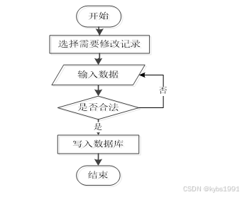 管理员可以对用户信息进行的修改,用户可以对自己权限内的信息进行修改,首先进入修改信息界面,输入修改信息数据,系统进行数据的判断验证,修改信息合法则修改成功,信息更新至数据库,信息不合法则修改失败,重新输入。修改信息流程图如图2-2所示。