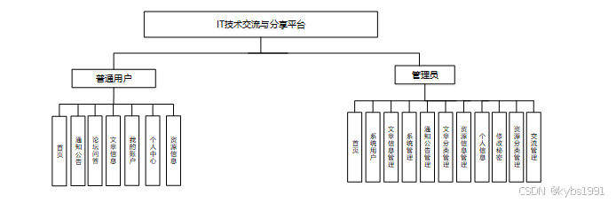 按照IT技术交流与分享平台的角色,划分为了普通用户模块和管理员模块这两大部分。