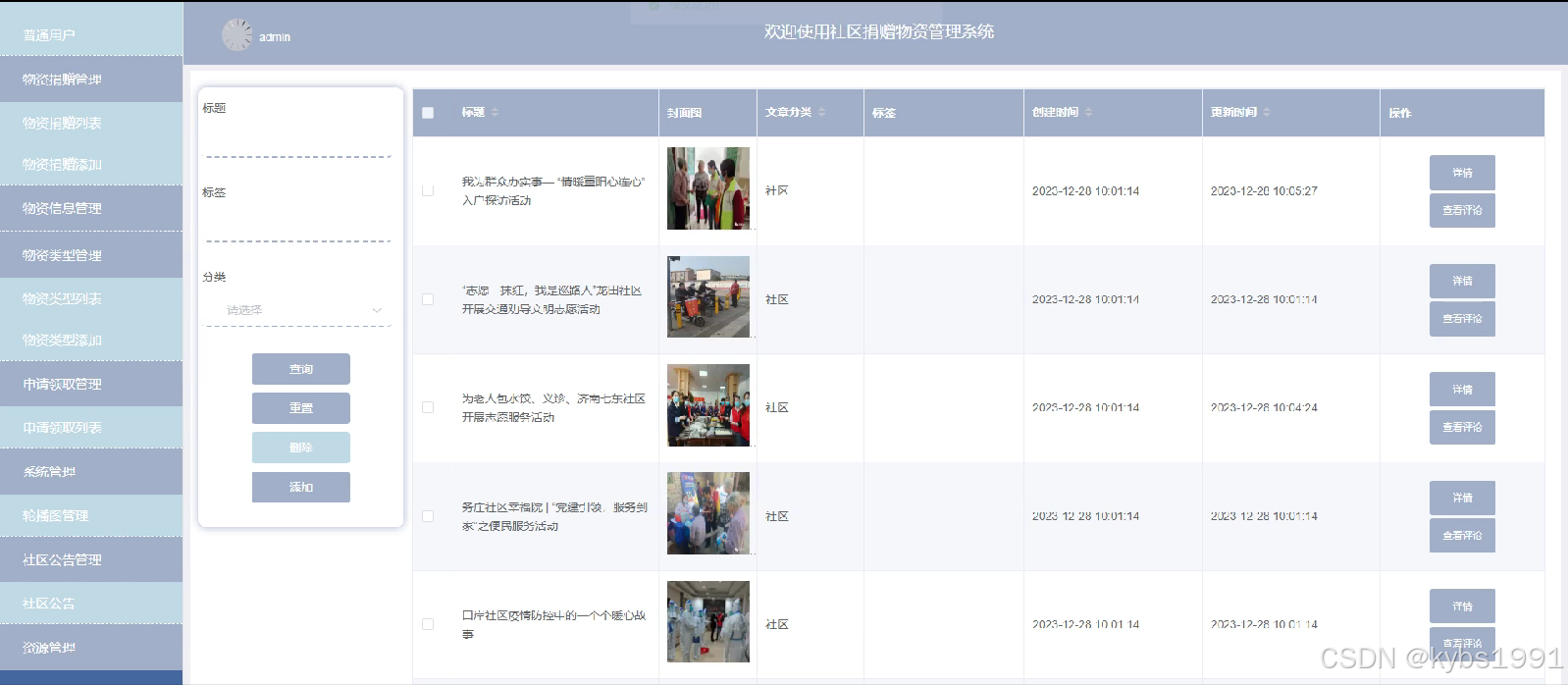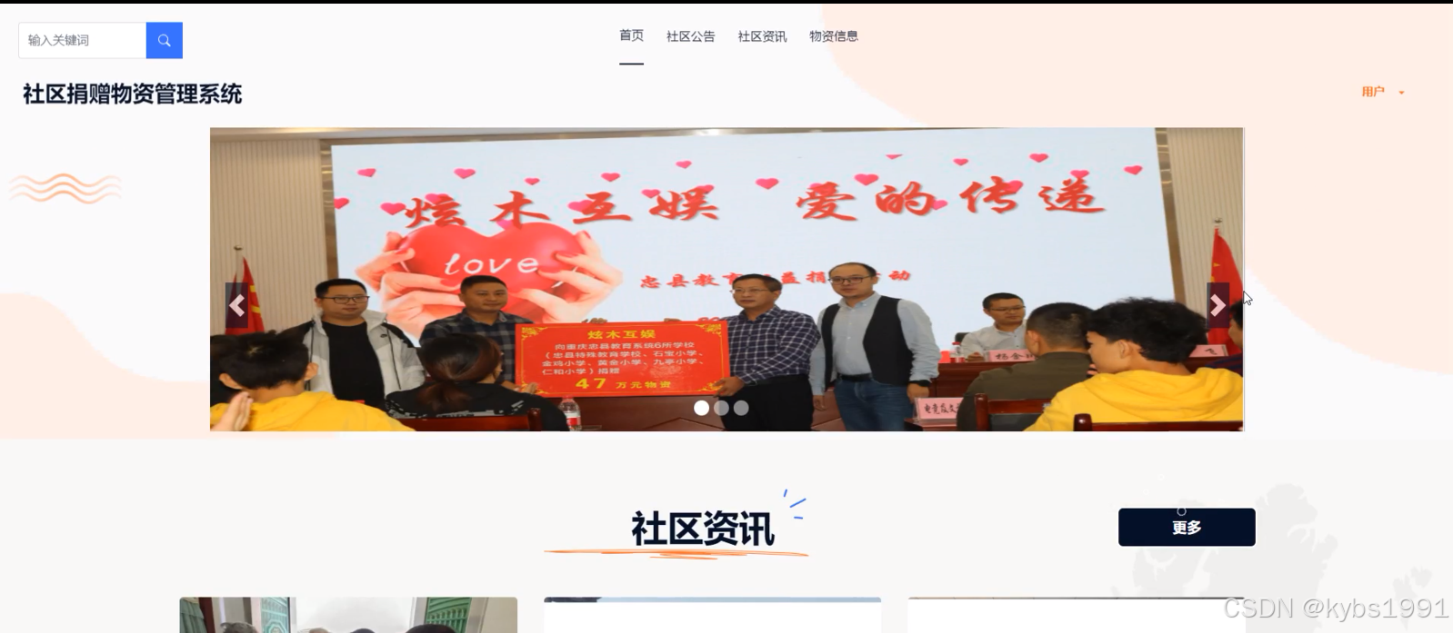 Keywords: Community donation material management system; SpringBoot framework; MySQL database