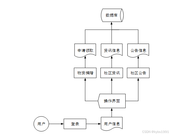 社区捐赠物资管理系统总体分为普通用户模块和管理员模块。两个模块表现上是分别独立存在,但是访问的数据库是一样的。每一个模块的功能都是根据先前完成的需求分析,并查阅相关资料后整理制作的。