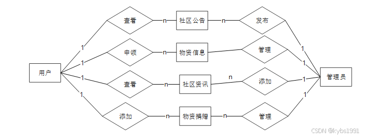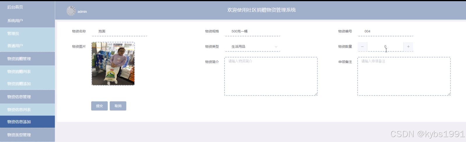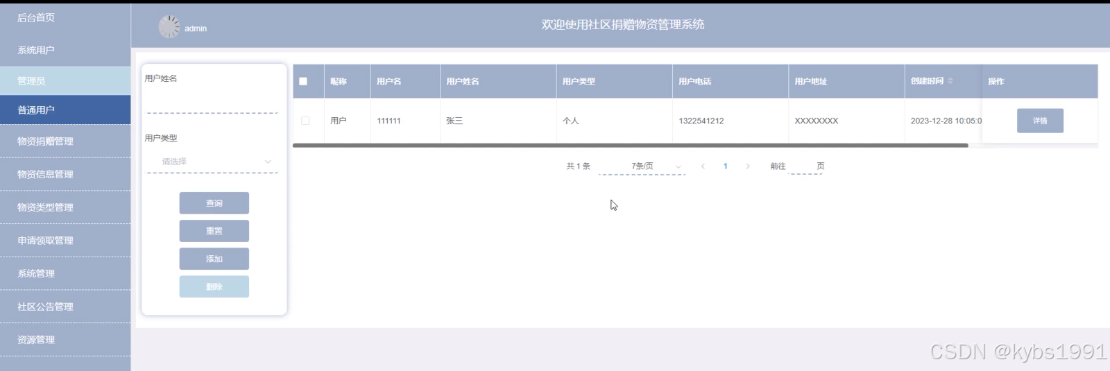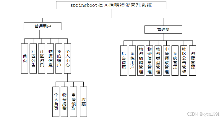 社区捐赠物资管理系统的功能主要分为普通用户和后台管理员一共两个角色。