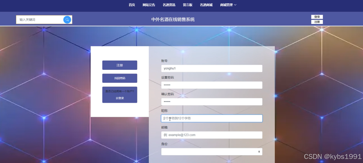 注册登录:用户注册为用户后再登录中外名酒在线销售系统,可以对个人信息进行增删改查,比如修改个人资料,修改密码等。