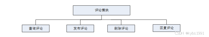 评论管理模块用于管理用户对商品或其他内容的评论。在评论管理模块设计中,我们将定义评论数据的结构和属性,包括评论内容、评分、时间等。该模块应支持用户发表评论、查看评论、回复评论等功能,并提供相应的管理接口用于审核和删除不合规的评论。其结构图如下所示。