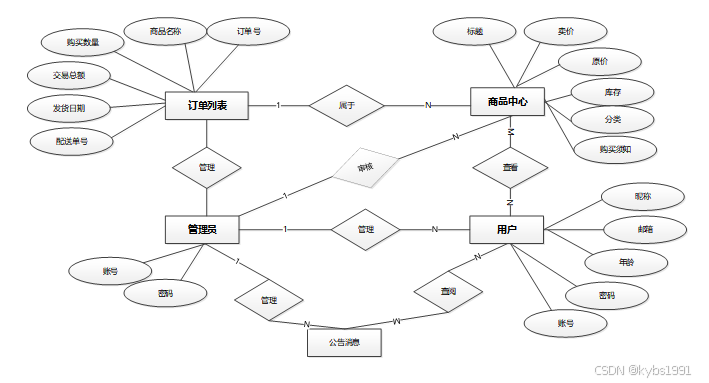 下面是整个明珠超市进销存管理系统中主要的数据库表总E-R实体关系图。