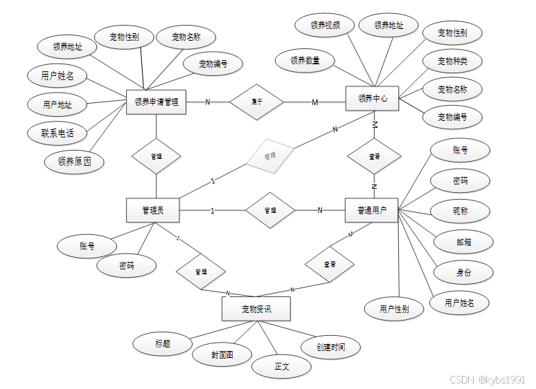 下面是整个基于Spring Boot+Vue的宠物领养系统中主要的数据库表总E-R实体关系图。