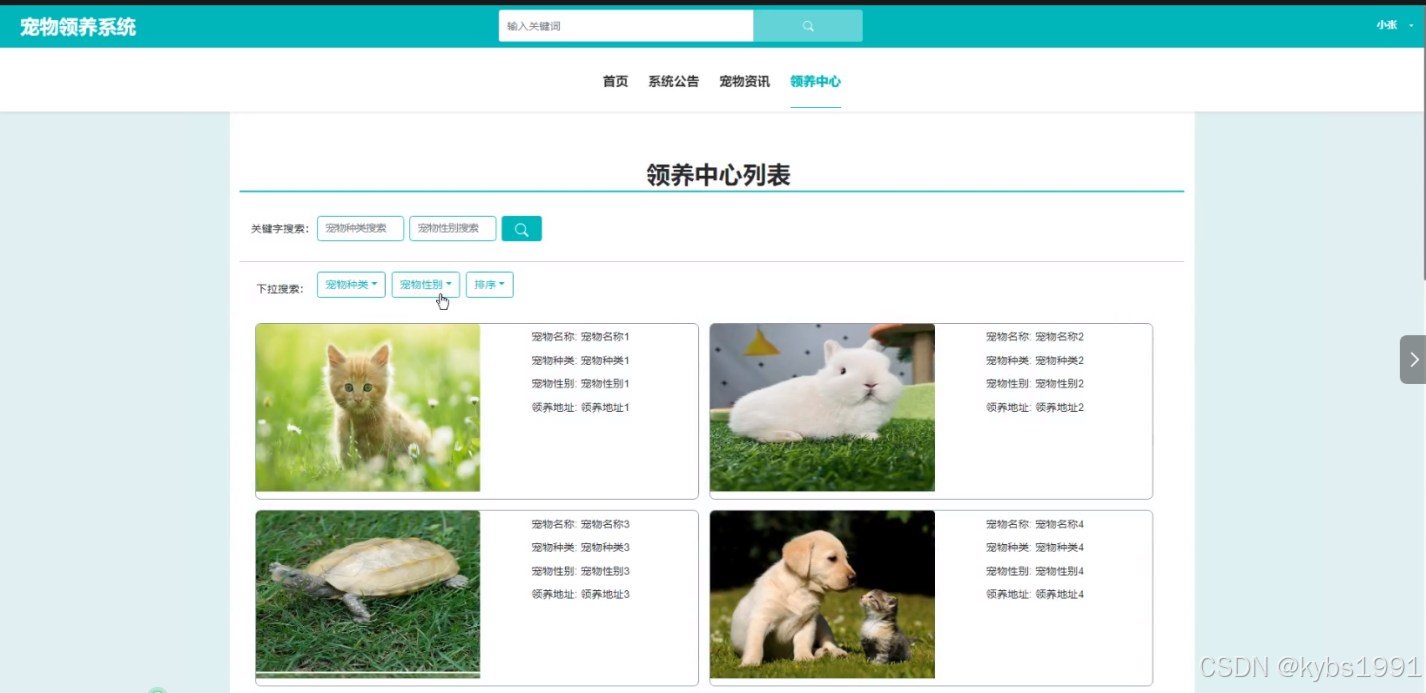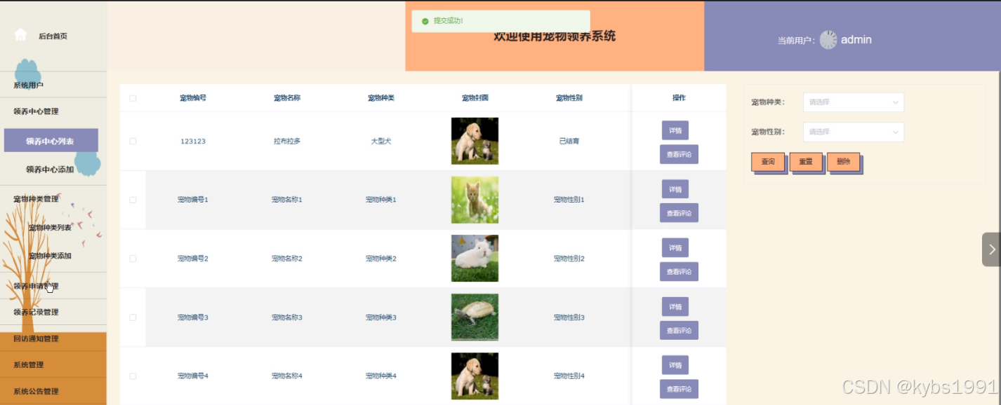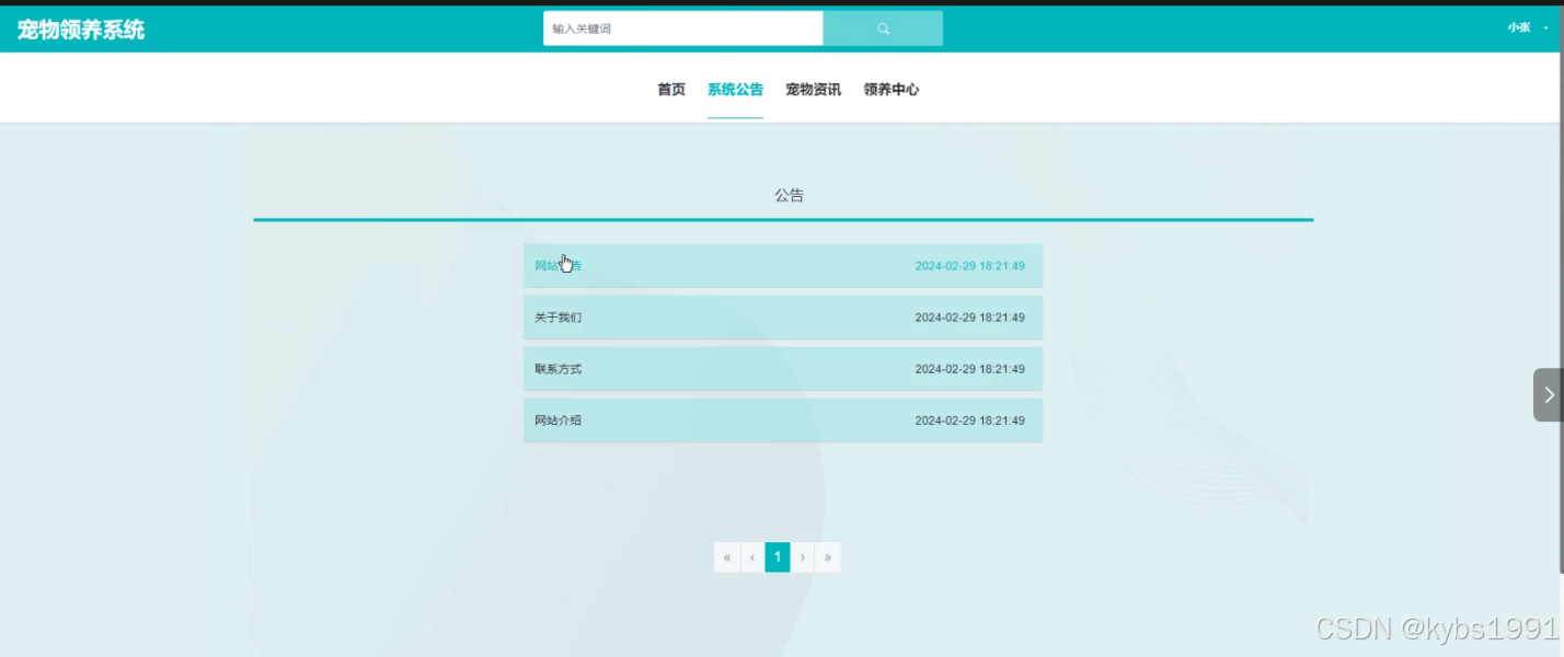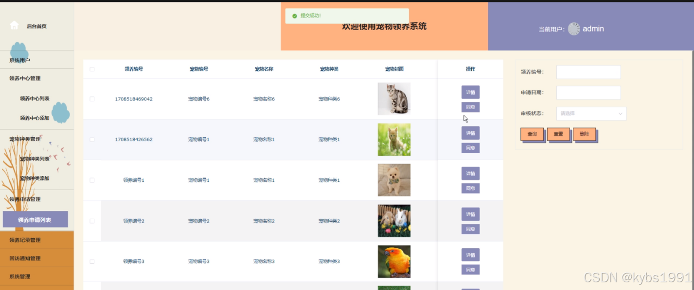 关键词:宠物、宠物领养系统;Spring Boot+Vue