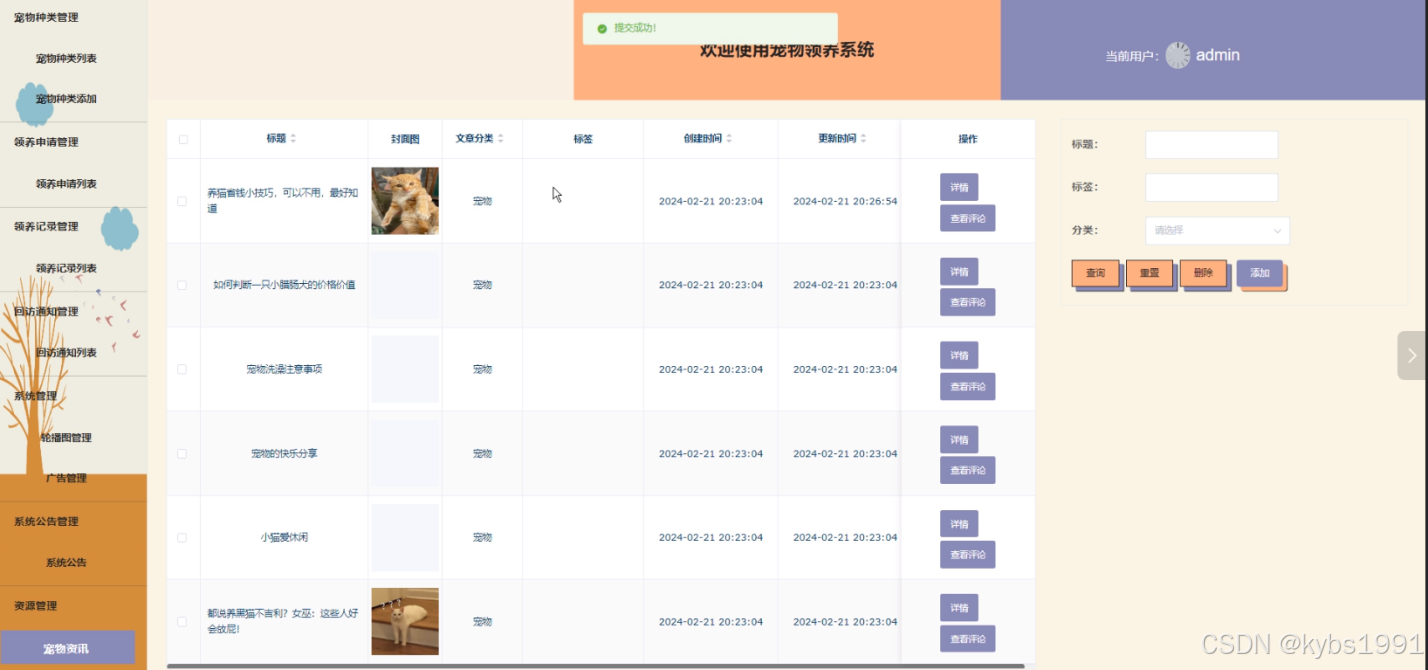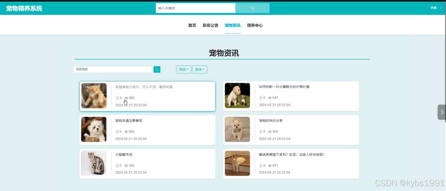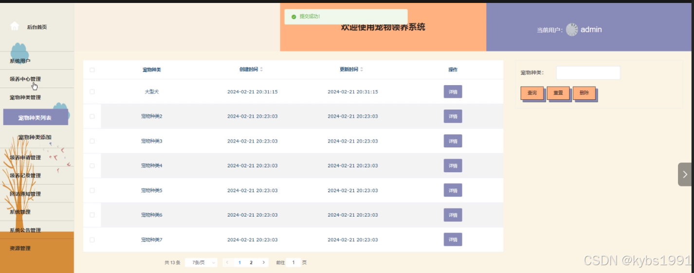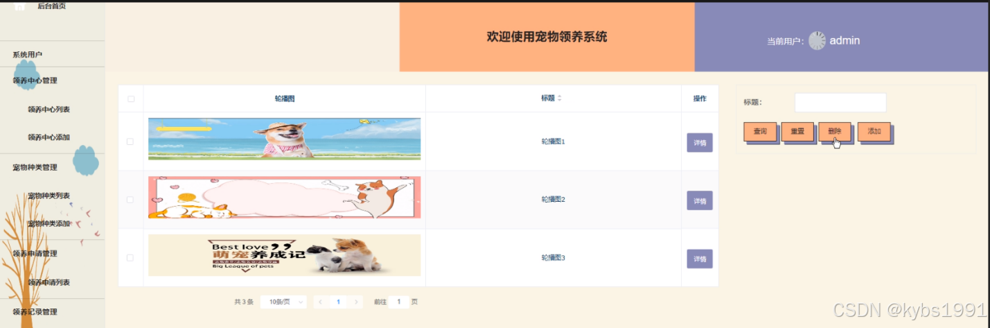 关键词:宠物、宠物领养系统;Spring Boot+Vue