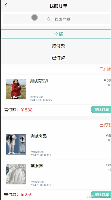 (5)我的订单:用户在提交订单后,可以对提交的订单进行管理。