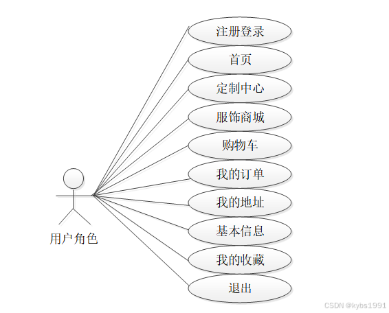 通过2.3功能的分析,得出了本基于微信小程序的民族服饰购买和定制系统的用例图: