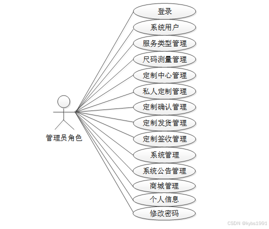 图2-4 基于微信小程序的民族服饰购买和定制系统管理员角色用例图