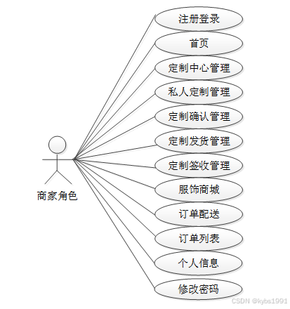 图2-5基于微信小程序的民族服饰购买和定制系统商家用户角色用例图