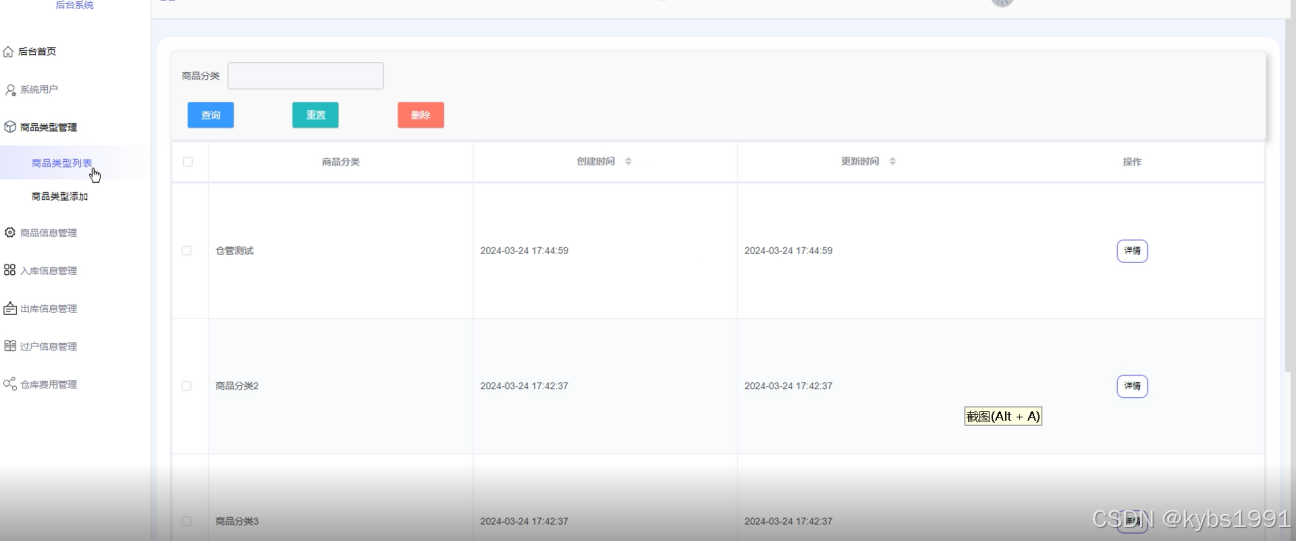 管理员可以对商品的类型进行管理,包括添加新的商品类型、编辑现有商品类型信息、删除不需要的商品类型等操作。界面如下图所示。