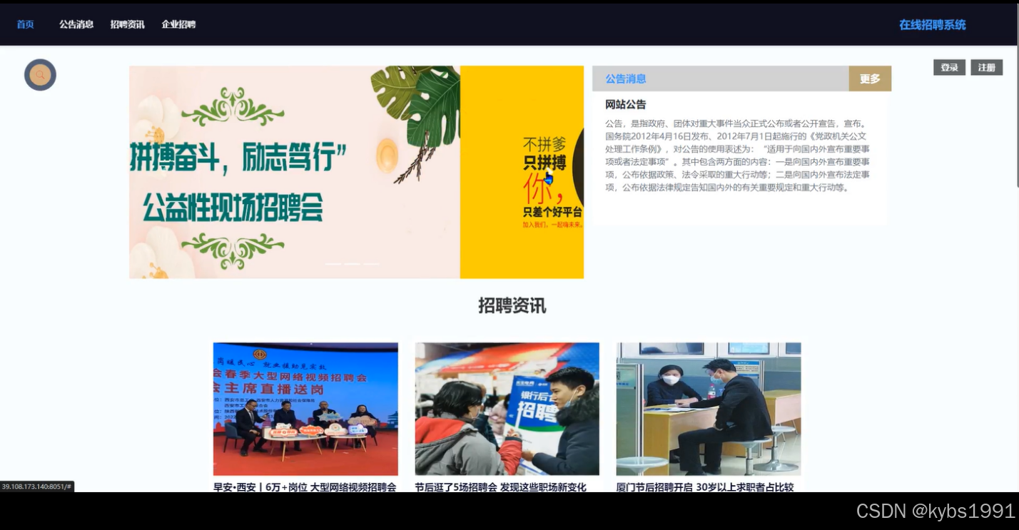 本文介绍了一个基于Web和Spring Boot技术的在线招聘系统的设计与实现过程。随着互联网的普及和人才市场的日益活跃,传统的招聘方式已难以满足企业和求职者的需求。因此,开发一个高效、便捷、用户友好的在线招聘系统具有重要的现实意义。