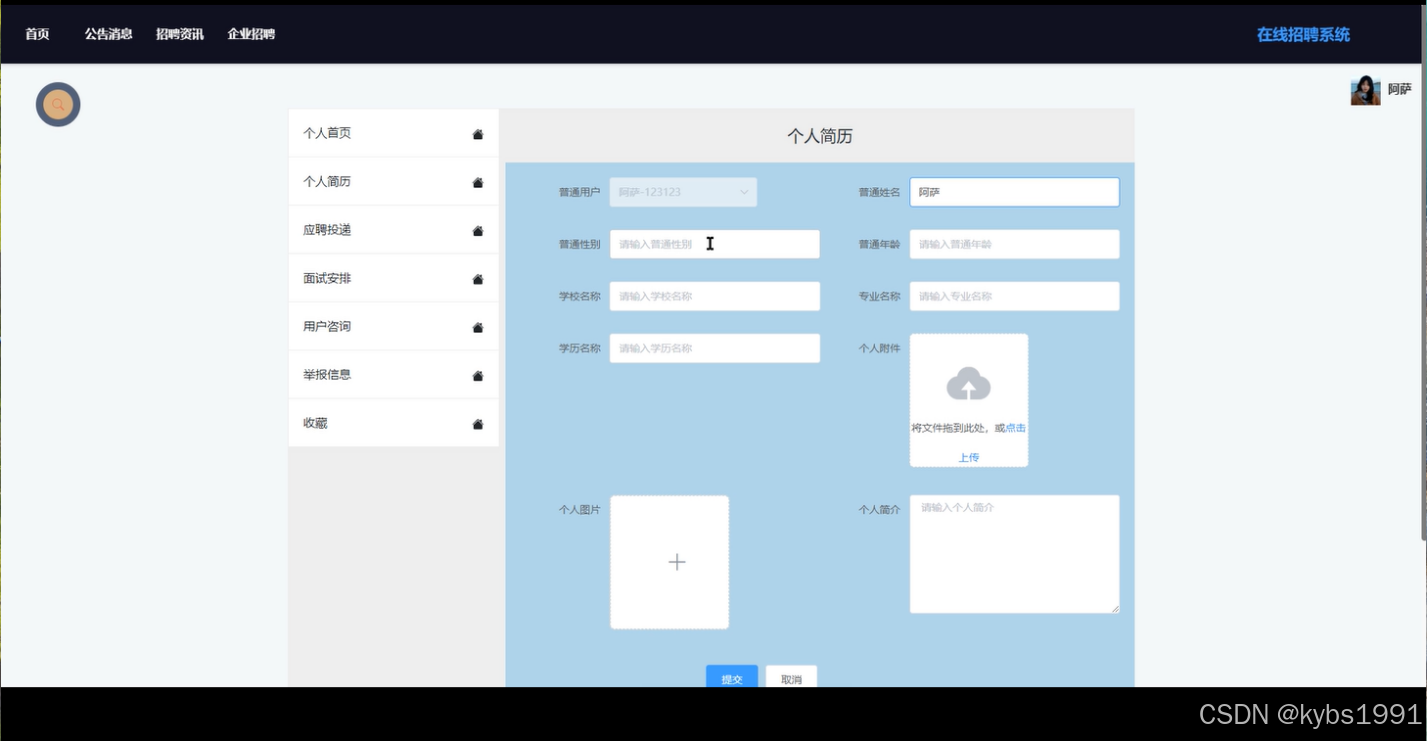 个人简历管理: 管理用户提交的求职简历信息。