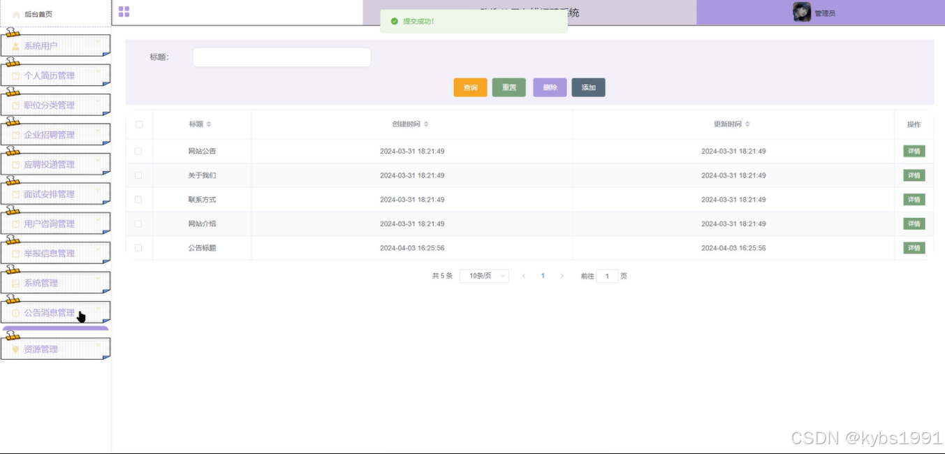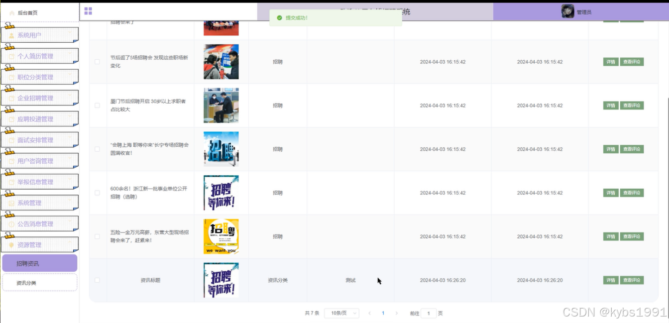 招聘资讯: 管理系统中的招聘资讯信息。