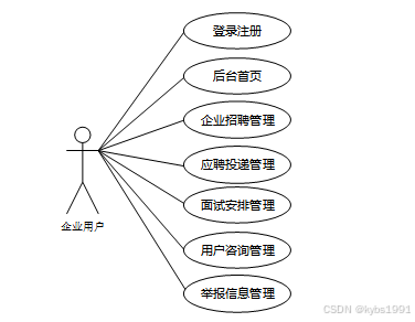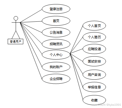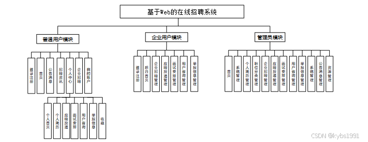 按照基于Web的在线招聘系统的角色,我划分为了普通用户模块、企业用户模块和管理员模块这三大部分。