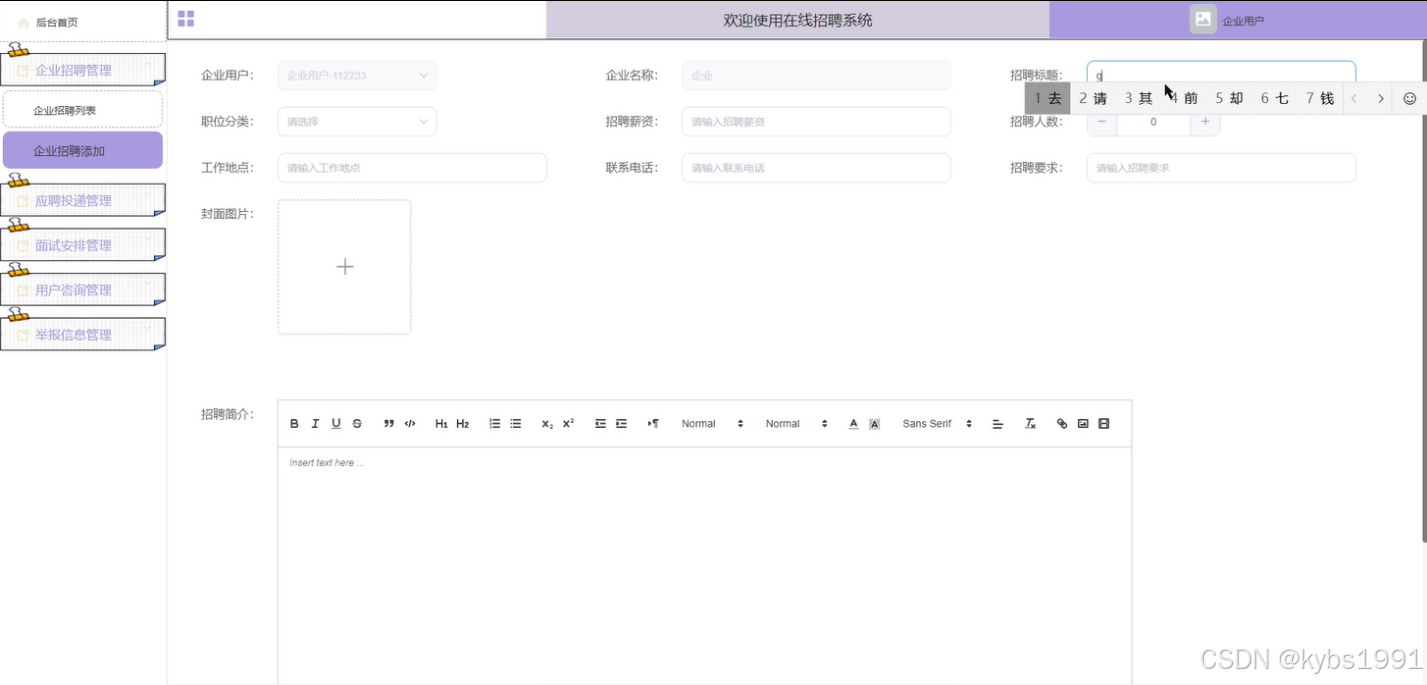 管理员添加企业招聘信息界面测试: