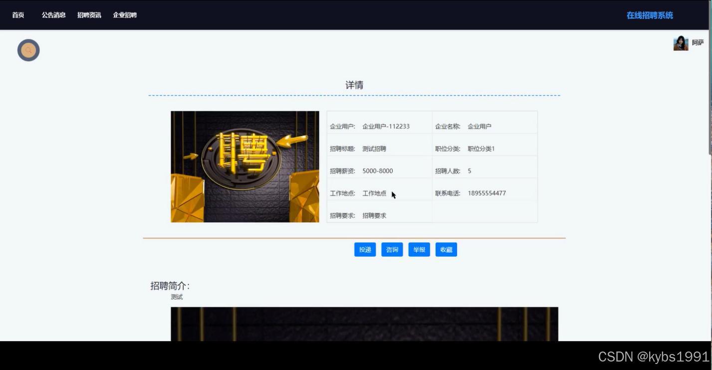 举报信息: 用户可以举报不良招聘信息或行为。