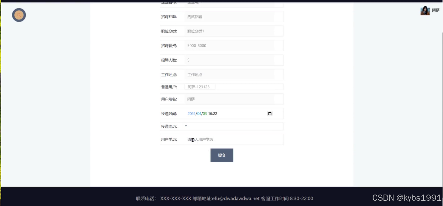 图4-4 应聘投递提交界面图