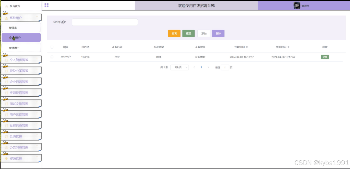 系统用户: 管理系统用户的账号信息,包括普通用户和企业用户的账号管理。