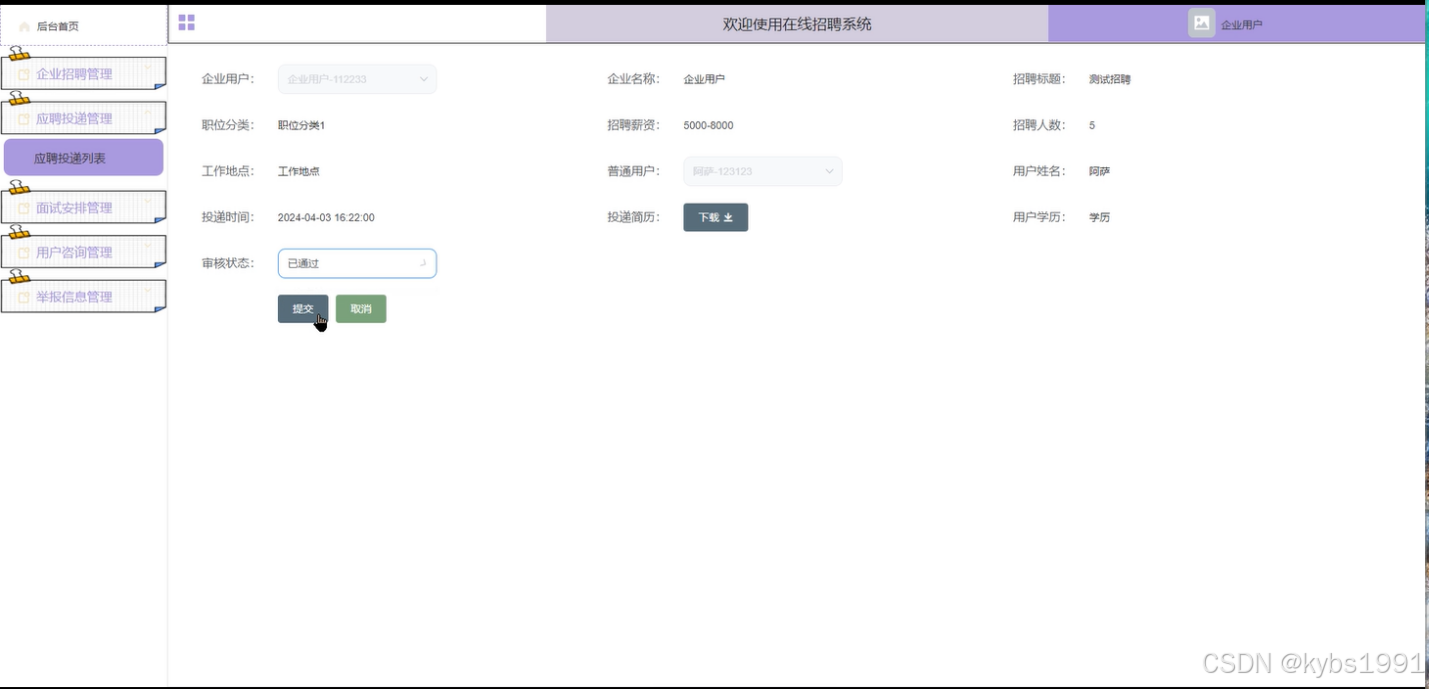 图4-8应聘投递审核界面图
