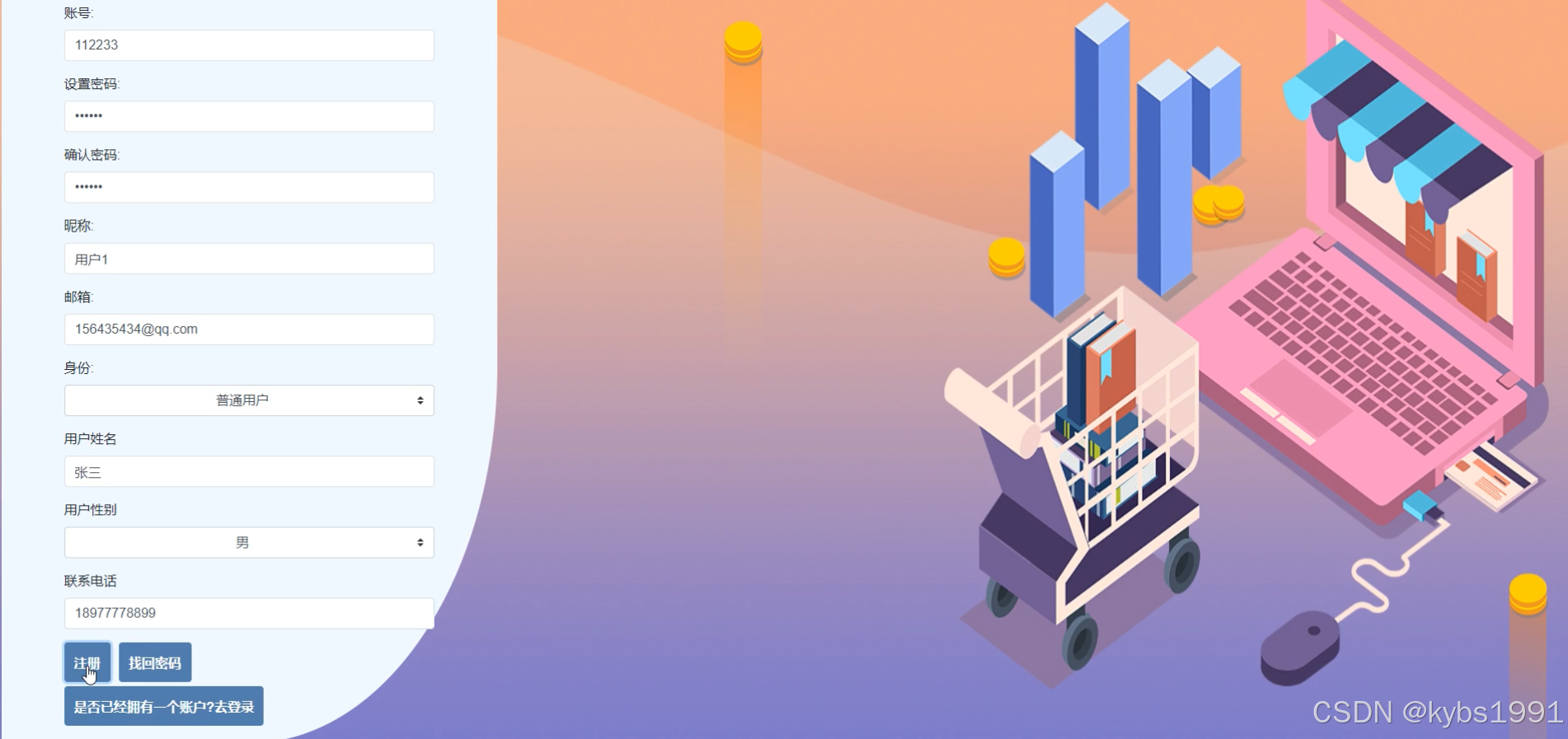 (1)注册登录:当用户想要对系统中所实现的功能进行查询管理的时候,就必须进行登录到系统当中,如果没有账号的话,在登录界面,点击“注册”按钮就会跳转到注册的界面,根据提示填写好注册信息,添加提交,用户的信息在数据库中就添加完成了,然后再输入填写好的账号和密码进行登录;