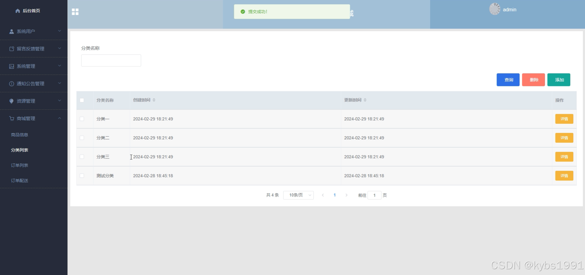 管理人员在“商城管理”这一菜单中可以对商品信息进行查询和添加分类管理。