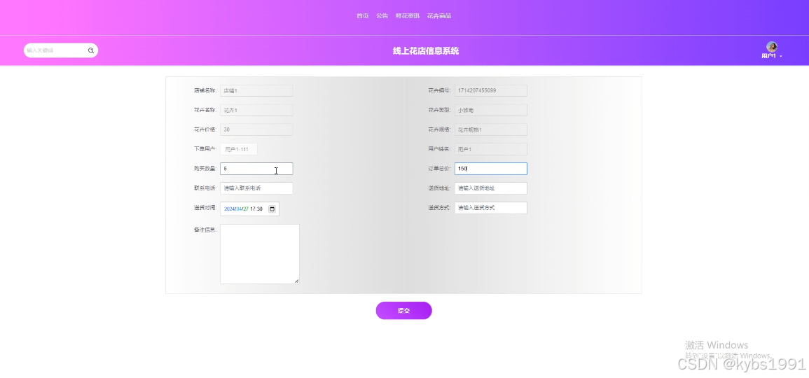 | TC-009 | 输入有效的花卉订单信息 | 花卉订单添加成功,显示添加成功的提示信息 |