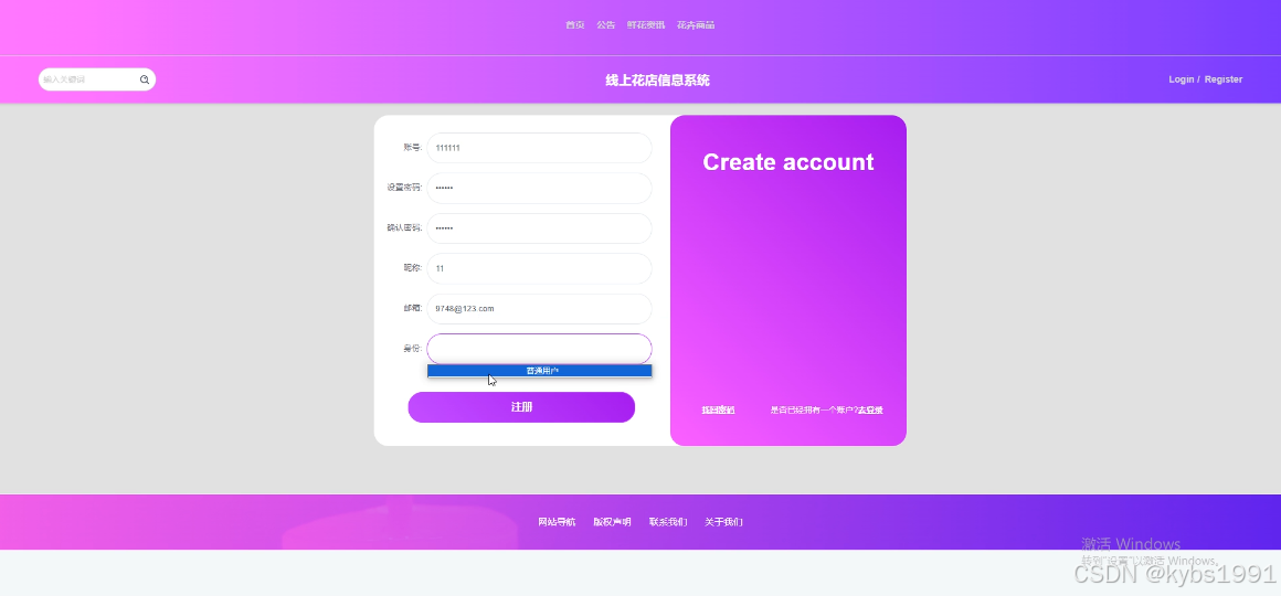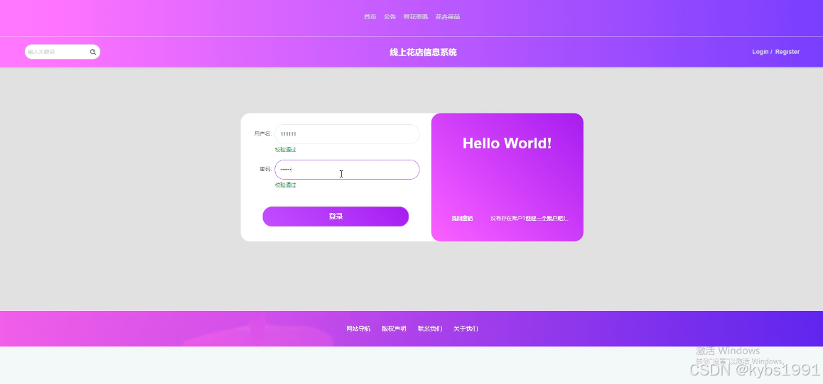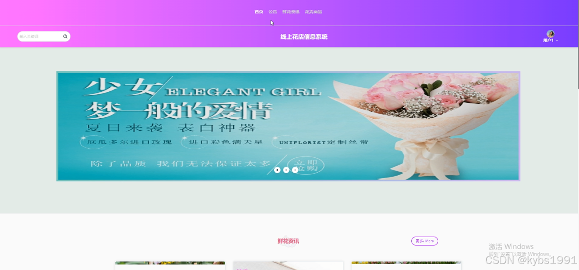 (2)查看线上花店信息系统的首页信息:线上花店信息系统的首页信息包含了首页、公告、鲜花资讯、花卉商品等。