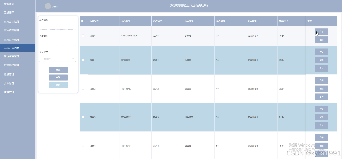 关键词:数据大屏;Spring Boot;Java;线上花店信息系统