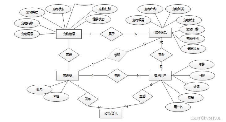下面是整个springboot 宠物之家管理系统中主要的数据库表总E-R实体关系图。