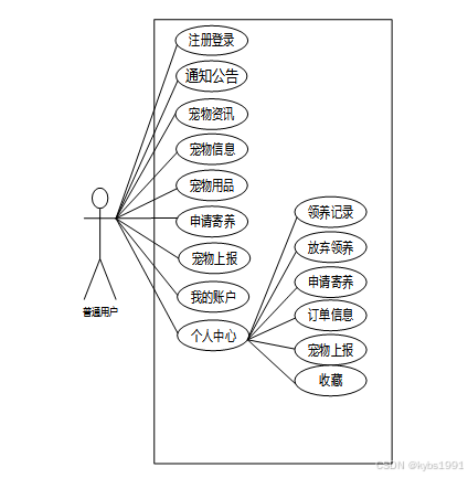 springboot 宠物之家管理系统中用户角色用例图如图2.1所示: