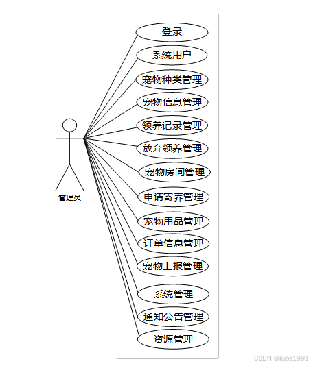 springboot 宠物之家管理系统中管理员用例图如图2.2所示: