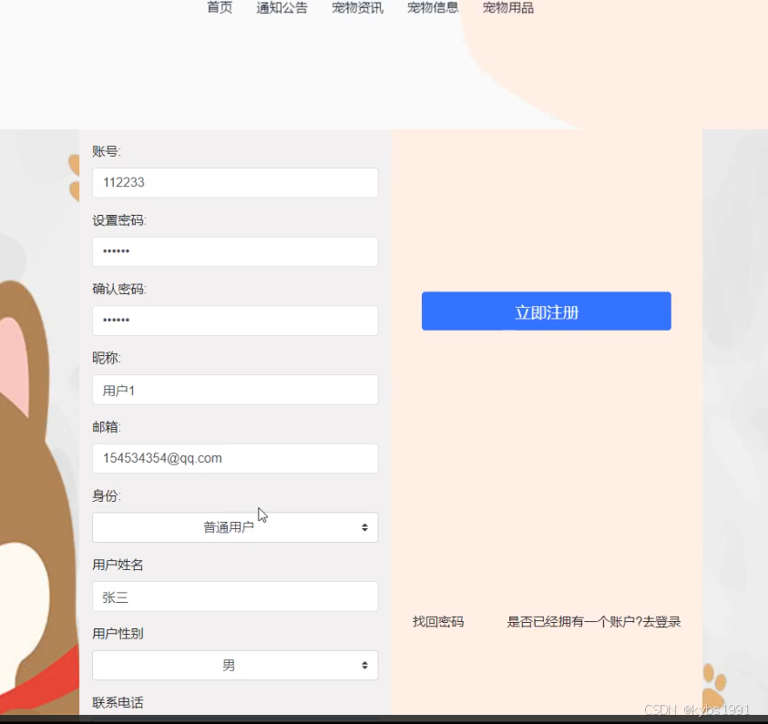 - 宠物上报:用户可以对宠物信息进行上报,填写相关信息后,点击提交即可。