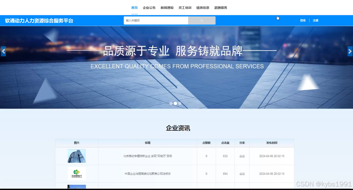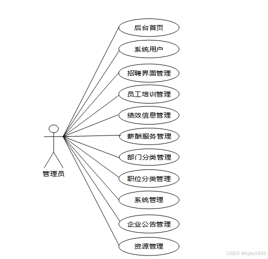 平台主要分为员工用户和管理员两个角色。员工用户可以通过平台进行登录注册、查看企业公告和资讯、参与员工培训、查看绩效信息和薪酬服务,以及管理个人账户和个人中心等。管理员则拥有更为全面的后台管理功能,包括系统用户管理、招聘界面管理、员工培训管理、绩效信息管理、薪酬服务管理、部门分类管理、职位分类管理、系统管理(如轮播图管理)、企业公告管理以及资源管理(如企业资讯和资讯分类管理)等。