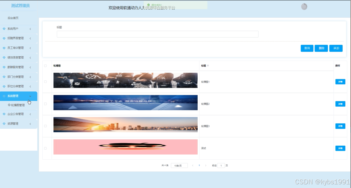 轮播图管理: 管理系统首页轮播图信息,包括添加、编辑和删除图片等。