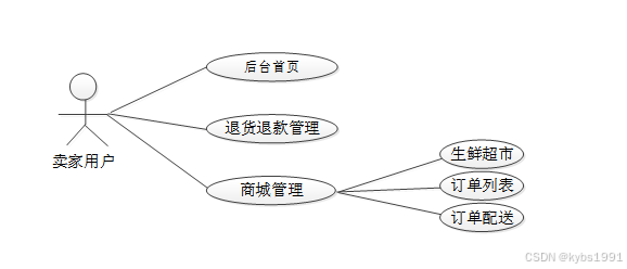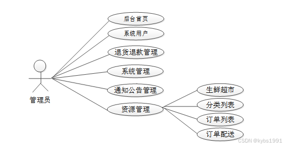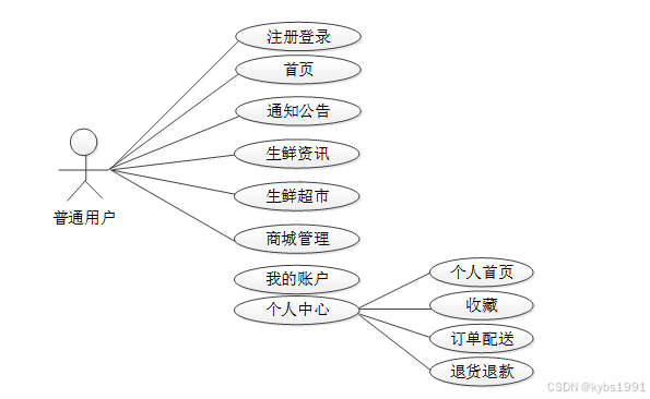 通过3.2功能的分析,得出了本基于Python的生鲜产品销售网站设计与实现的角色用例图: