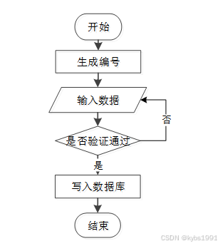 用户成功登入系统后就能够实现增加数据的操作,增加数据的编号由系统生成,用户不能随意填写,除了编号以外,其他增加信息用户自己填写,填写后的信息经过系统验证,验证通过后即可完成数据新增,数据新增的流程图如下图3-4所示。
