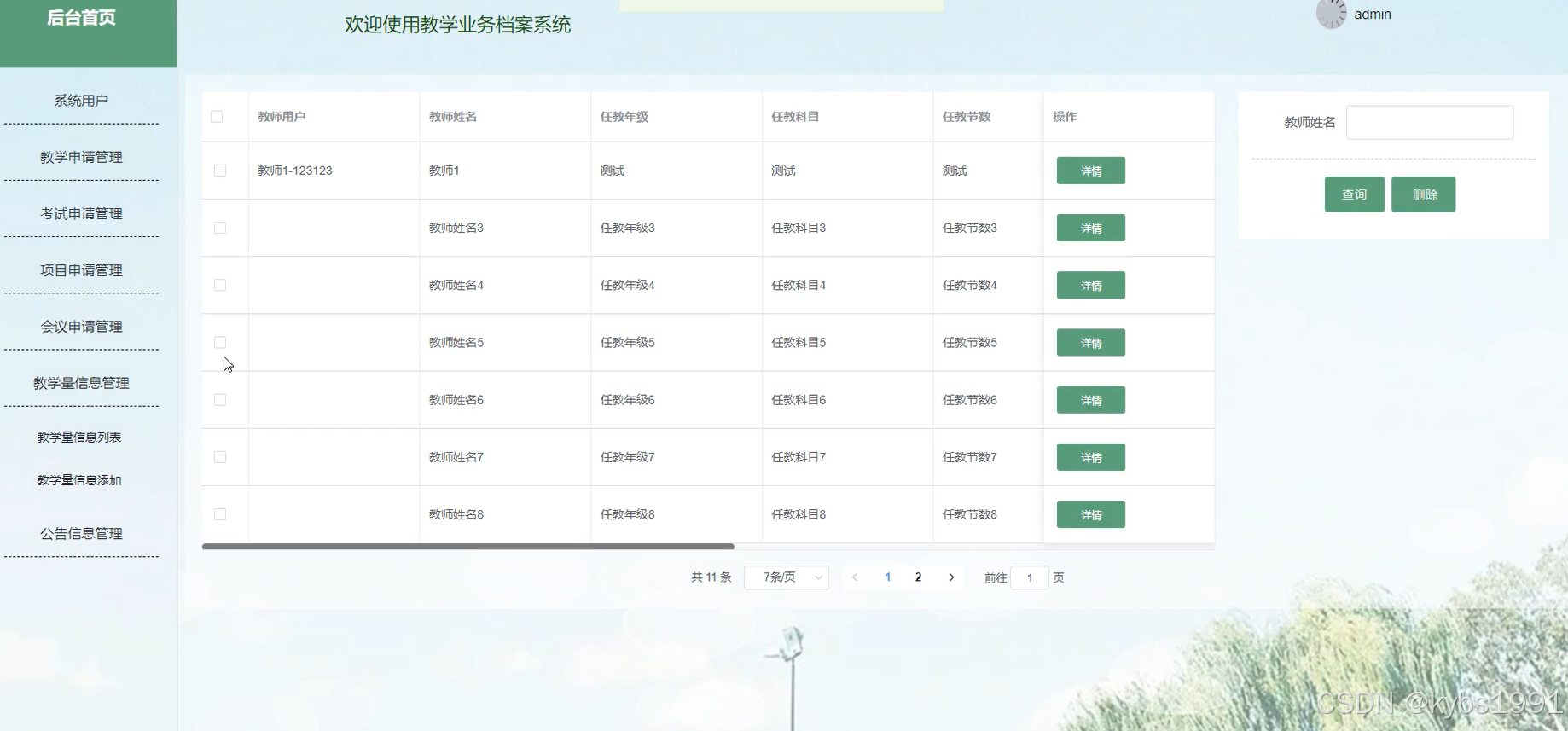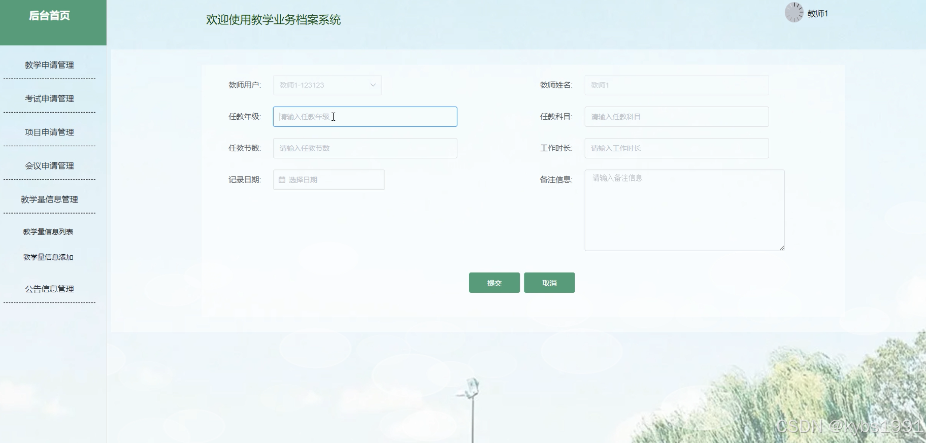 - 后台首页:提供教师用户的操作入口。