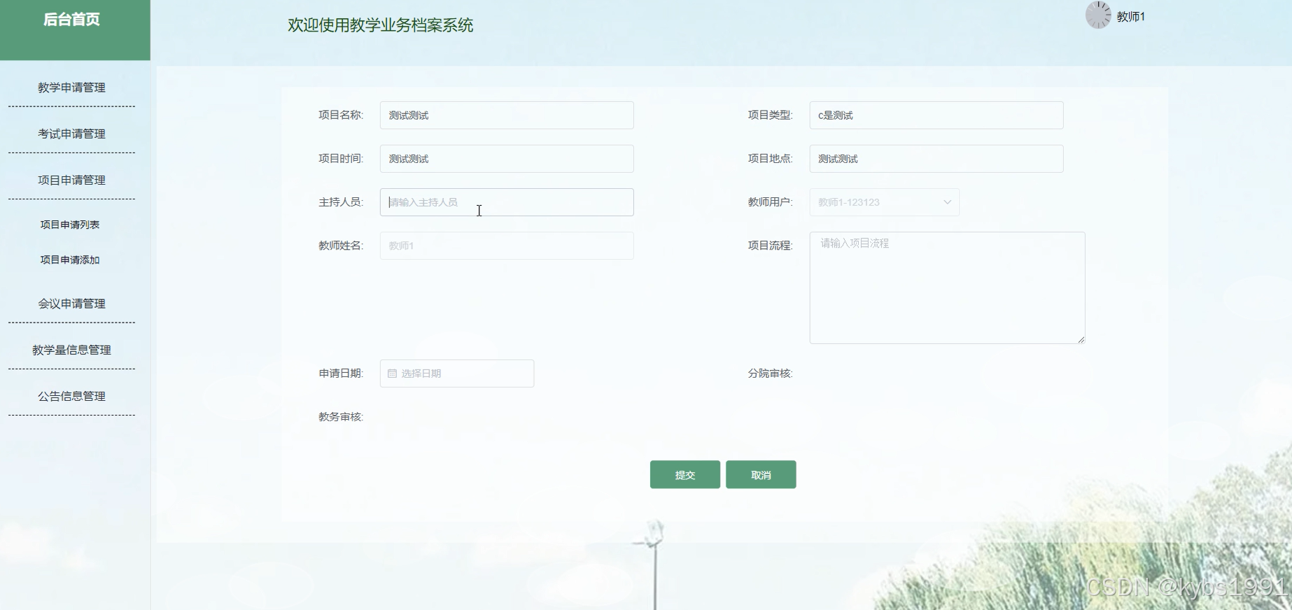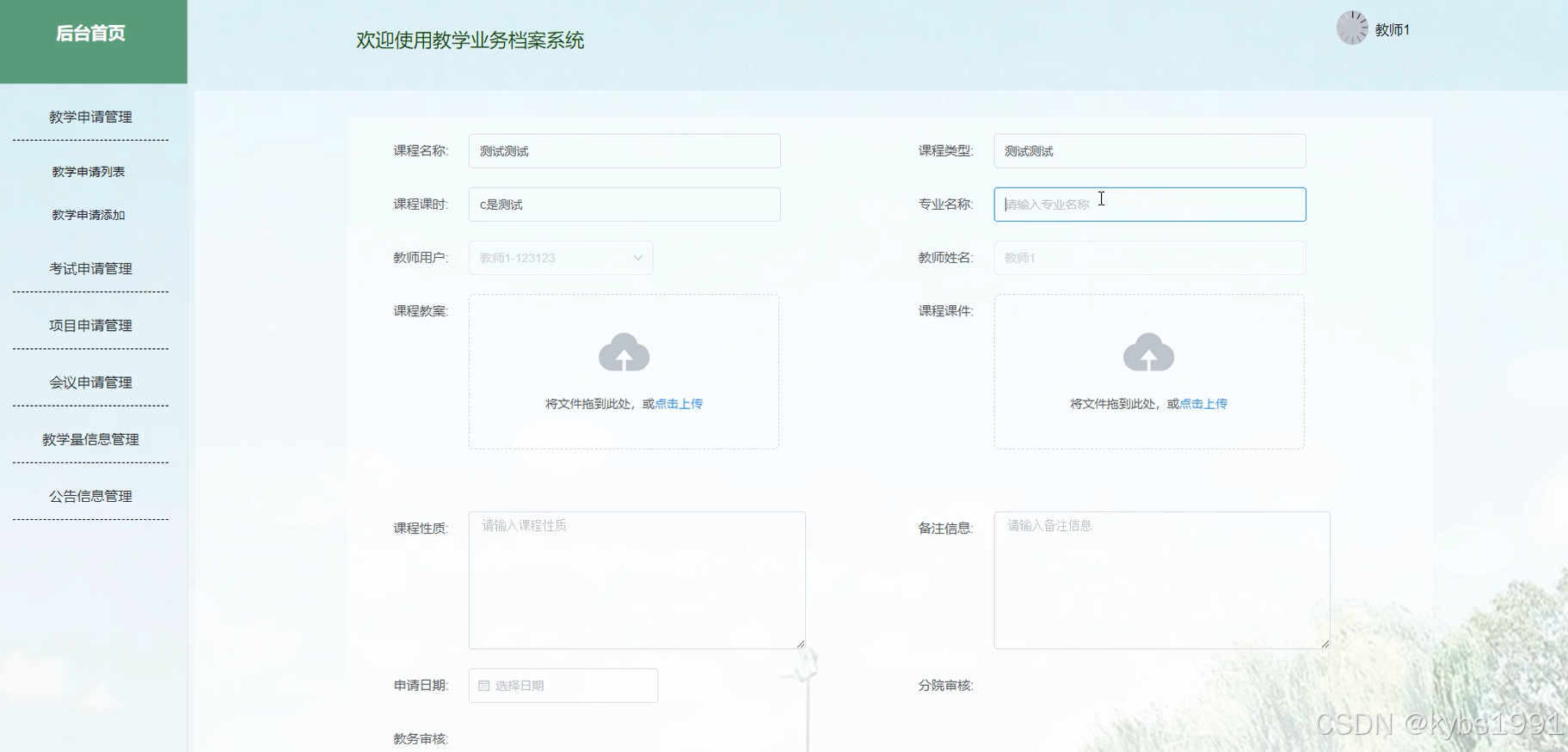 图4.4 教学申请添加界面图