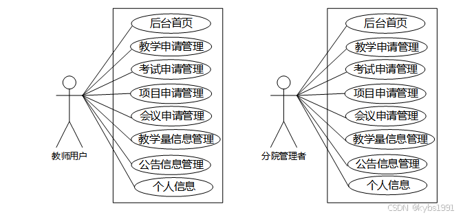 图2.1 教师用户、分院管理者角色用例图