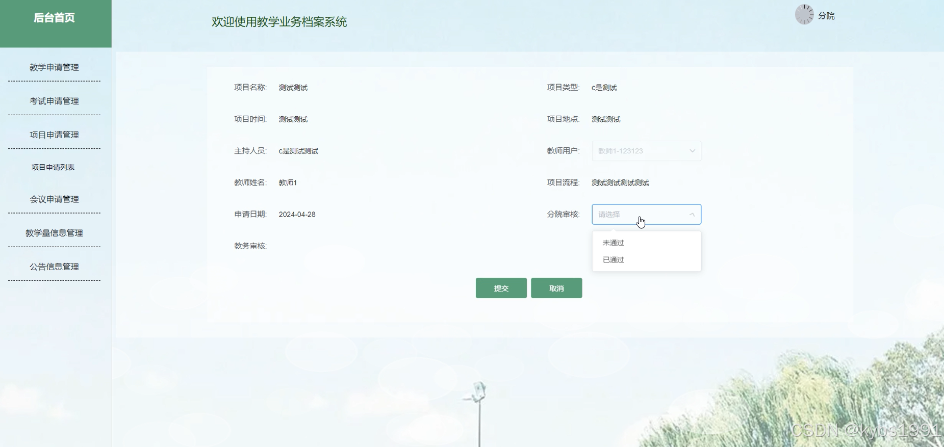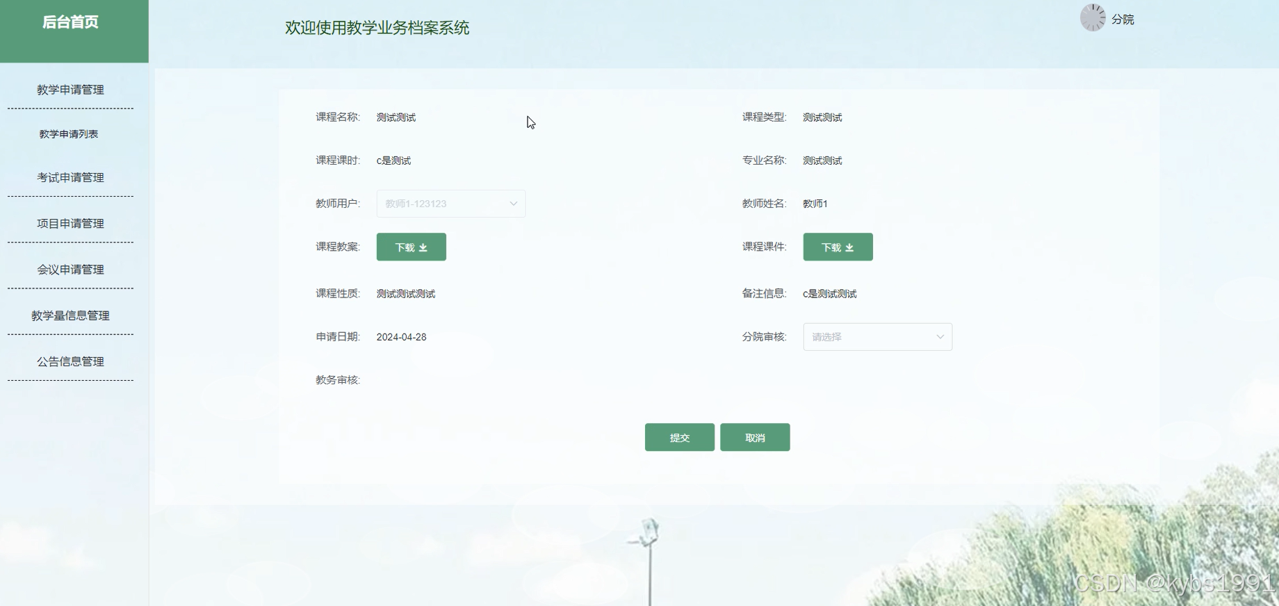 - 教学申请管理:分院管理者查看教学申请的详细信息,并进行审核等操作。