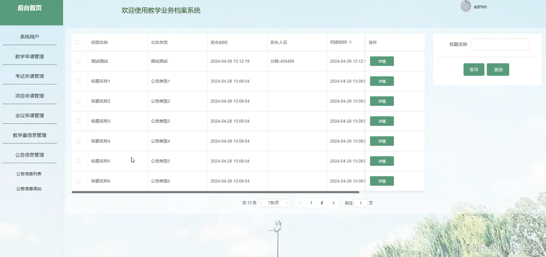 - 公告信息管理:查看公告信息的详细信息。