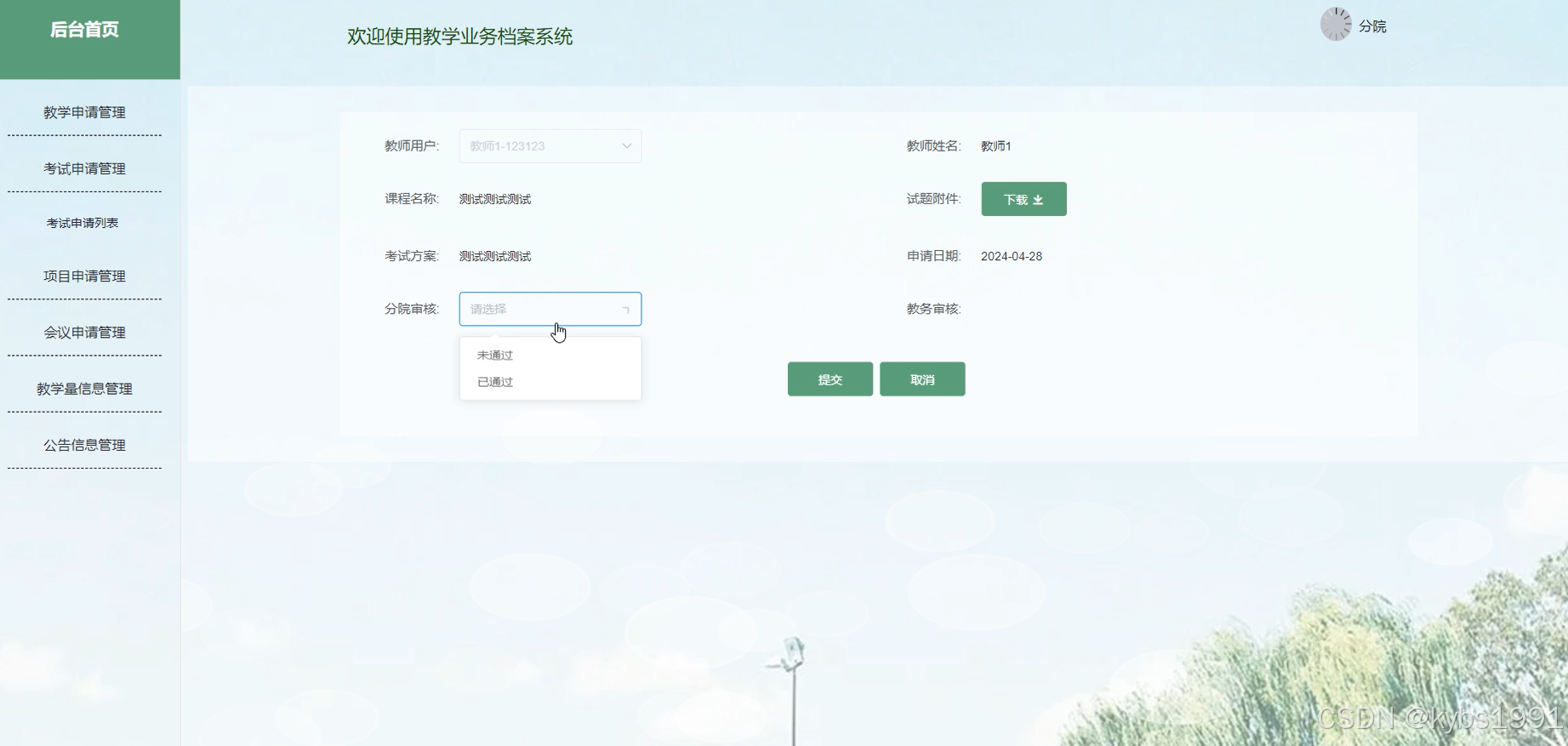 - 考试申请管理:分院管理者查看考试申请的详细信息,并进行审核等操作。